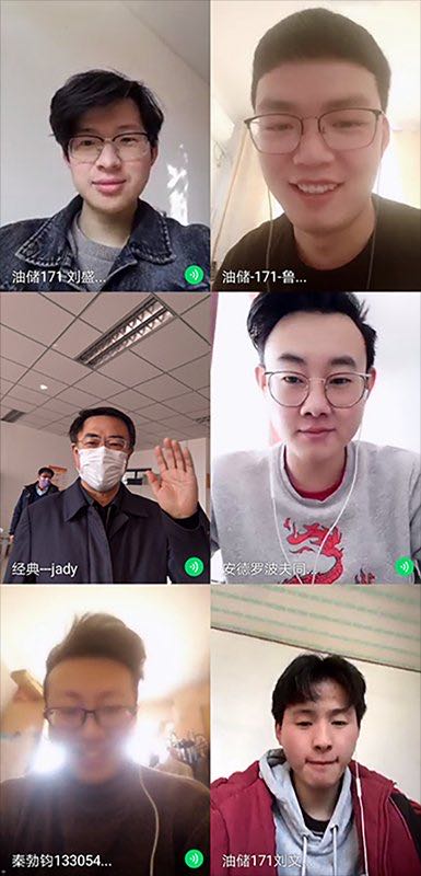 学生工作办公室,看望并慰问正在“连线”学生的辅导员老师。通过视频连线,马连湘与刚被评选为烟台市“牟平好人”的疫情防控志愿者罗浩宇同学和油储171班秦勃钧等6名同学进行了交流,充分肯定了志愿者们为疫情防控工作做出的贡献。罗浩宇等同学“连线”后,深受鼓舞,感受到了 财神捕鱼