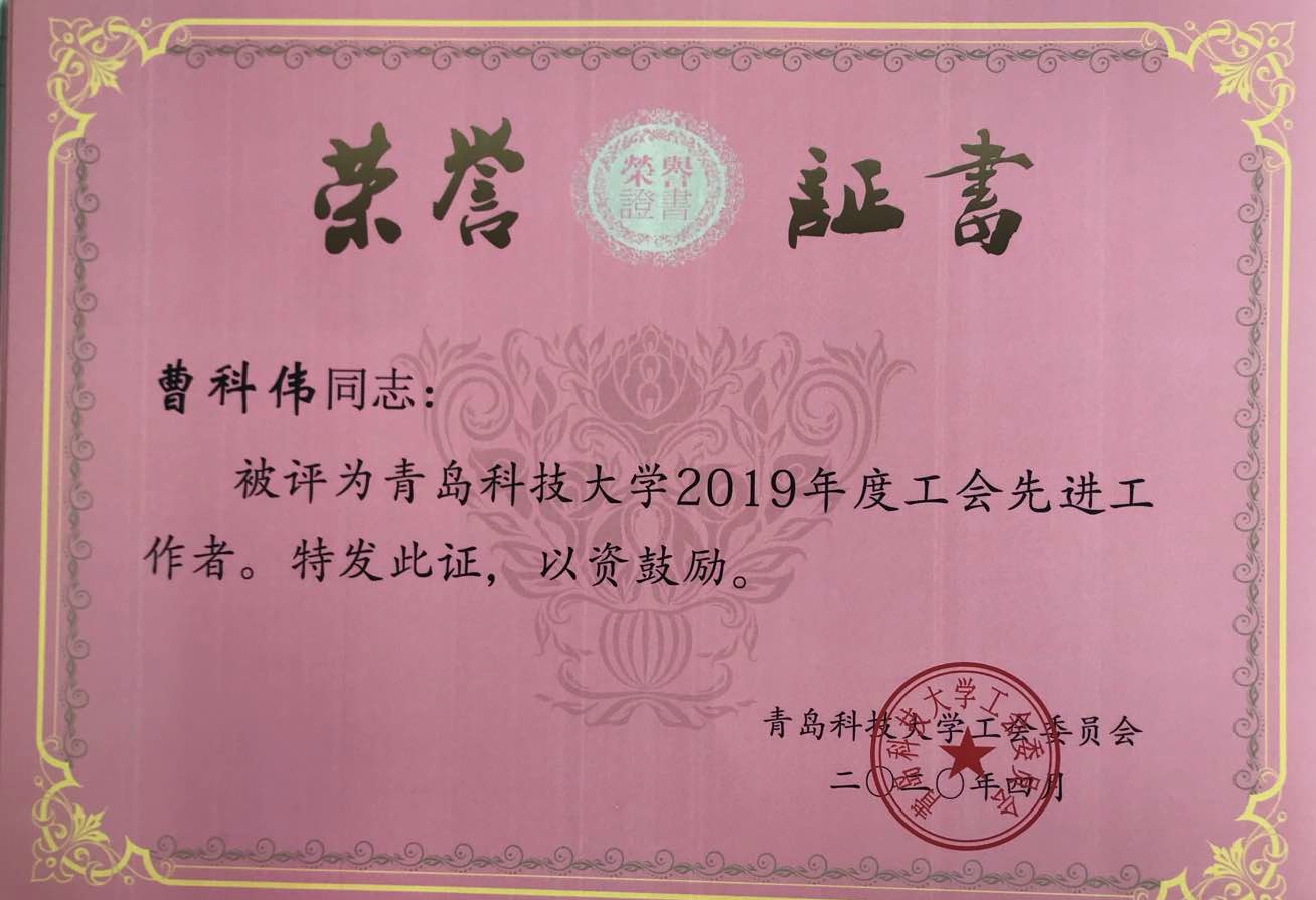 朱惠华、张莹、曹科伟、孙坤岩、白杨、陈东、张琳、张猛老师荣获“2019年度工会先进工作者”;