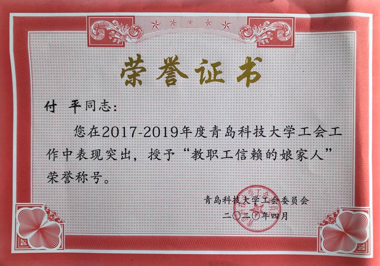 付平老师荣获“教职工信赖的娘家人”荣誉称号。