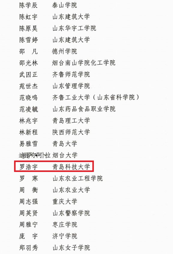 罗浩宇同学荣获山东省大学生“青春贡献奖”。