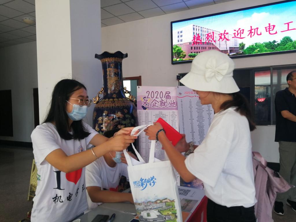 结合即将到来的母校70华诞,以“七秩正芳华,机电启新章”为主题,将思想引领融入迎新,激发学子与祖国同呼吸、与母校共奋进,激发爱国爱校情愫。体贴入微,以心迎新,为每一位机电学子提供“温馨大礼包”,内含口罩、新生宝典等,让每一位学子感受到家的温馨。设置“机电榜样”,突出高端就业和榜样引领作用,将学风教育融入迎新。细致谋划,合理设置流程,缩短新生报到时间。