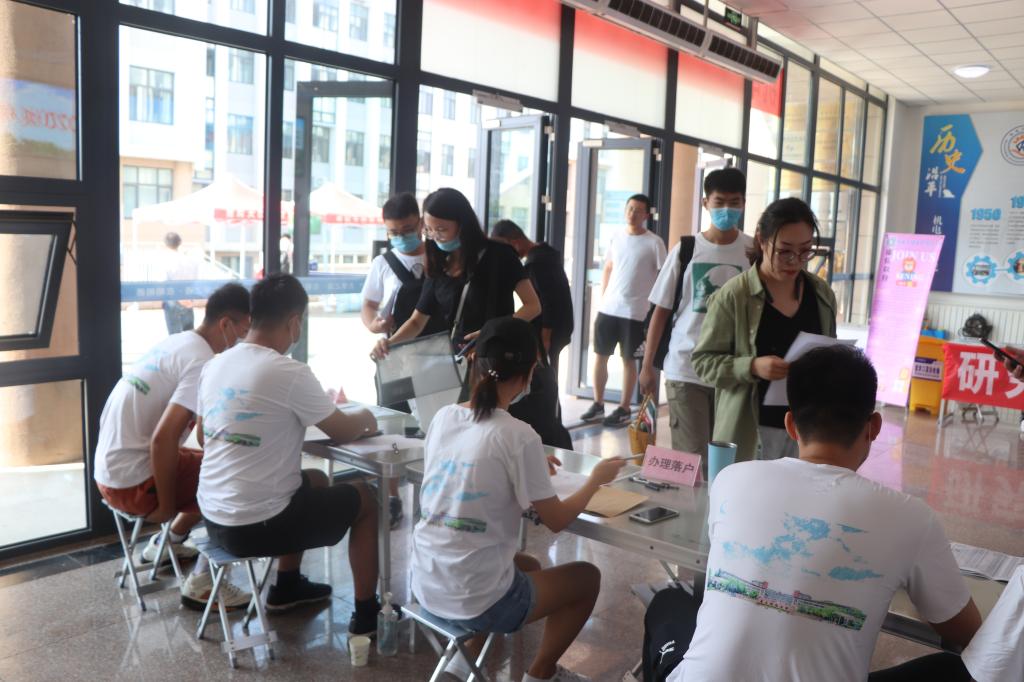 院长何燕、党委书记孙立军、副院长张斌、党委副书记肖强及分团委书记王作辉、全体辅导员来到迎新接待点,与迎新志愿者一道迎接研究生新同学的到来。