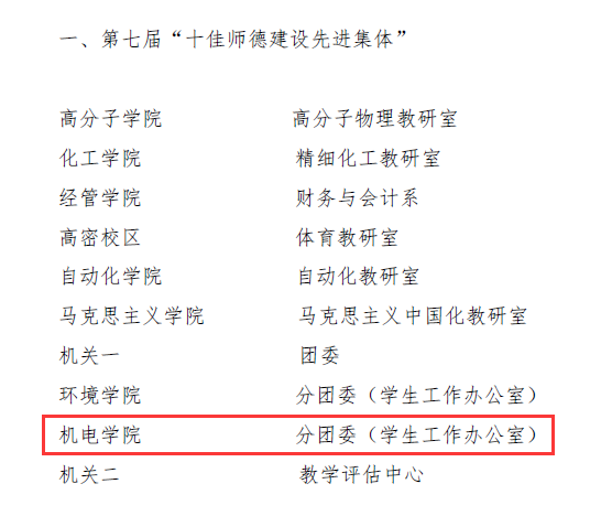 分团委(学生工作办公室)荣获2019年度先进集体名单。