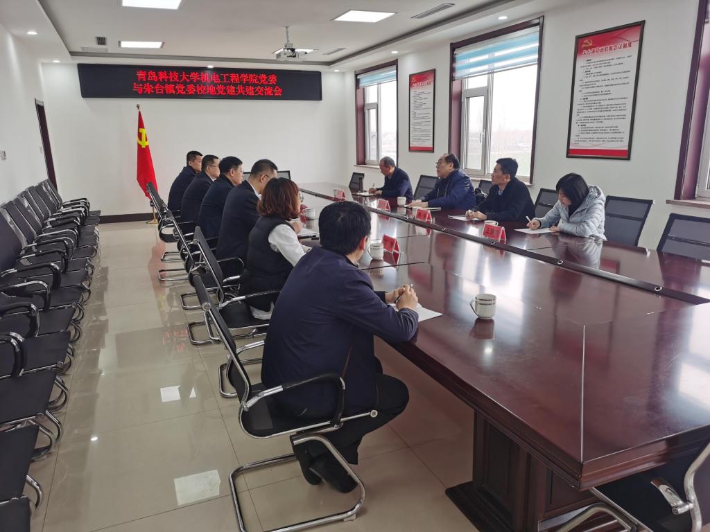 党委书记孙立军、副书记兼副院长肖强、副院长杨化林、团委副书记王娟娟一行4人赴淄博市临淄区朱台镇开展校地党建共建交流活动。临淄经济开发区管委会主任孙守强,朱台镇党委书记吴雪江,朱台镇党委副书记张磊,朱台镇党委委员、副镇长相昆涛,朱台镇党委委员郭倩参加交流。
