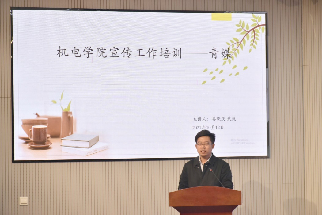 融媒体中心现有问题作出概括。他通过自身的经历激励各学生组织的宣传骨干力行初心,追求卓越,做优秀的新闻传播人,为构建机电大宣传格局贡献一份青春力量。