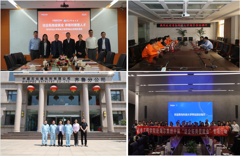 党委副书记兼副院长肖强分别带队赴海尔集团、江苏新海石化有限公司、江苏太阳雨集团、中国石化催化剂有限公司齐鲁分公司等进行调研活动,邀请结合校企合作和“访企拓岗促就业”活动,深入用人单位了解人才需求,沟通校企协同育人模式,精准对接重点行业、企业,认真做好从高校“走出去”,将企业“请进来”,多措并举为毕业生高质量就业保驾护航。