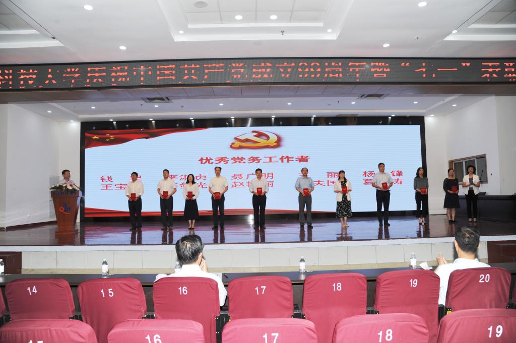 庆祝中国共产党成立99周年暨“七一”表彰大会于崂山区第二报告厅隆重召开。校领导、院级党组织书记、副书记,分团委书记,党支部书记代表,党员代表,学生入党积极分子代表参与会议。