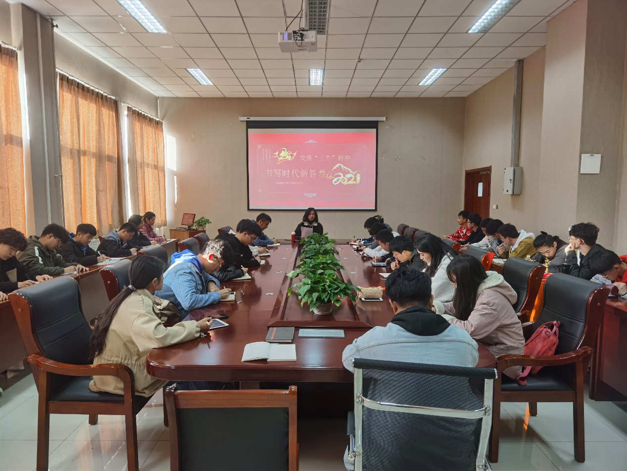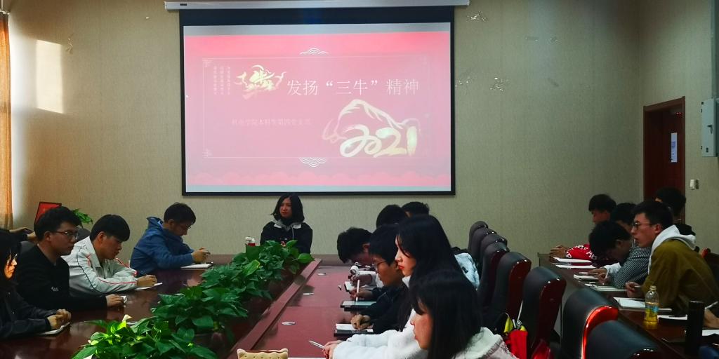 最后,孙坤岩作会议总结。青年党员特别是学生干部要在工作中放低姿态,提高站位,心系人民、务实为民,敢闯敢试、破局开路,勇于负重、甘于奉献,在牛年发挥好“三牛”精神,在中华民族前进途中接续奋斗、再创辉煌。
