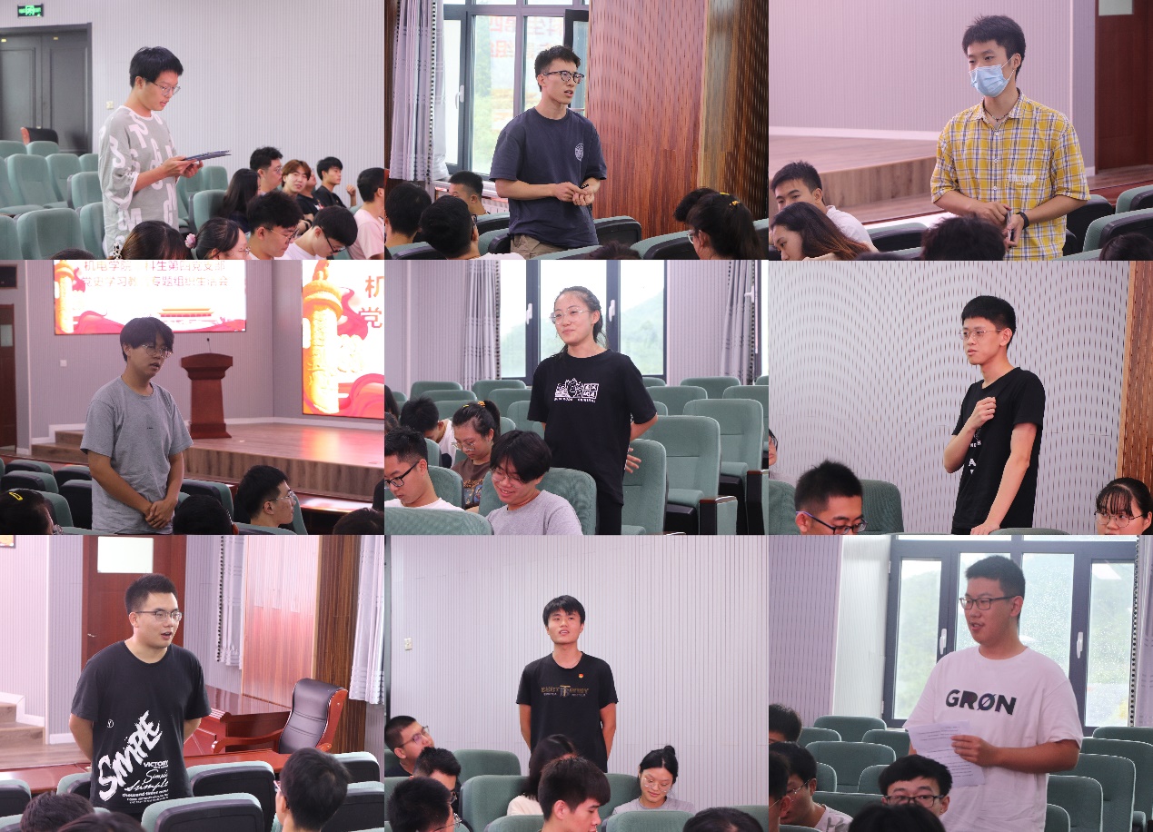 随后,各党小组开展组内学习分享和自我批评。丛柳谈到,学习党史让我意识到我们党在战火纷飞中诞生,在民族危难中崛起,在攻坚克难中壮大,未来也必将带领中国走向更加灿烂辉煌的明天。马晓东谈到,作为学生党员,既要手握笔杆子,刻苦学习,专心科研,更要做到知行合一,走出教室,在社会实践中贡献自己的力量,在基层服务中找寻自己的价值。杨奇龙谈到,初心易得,始终难守,我们要从历史中汲取宝贵经验,并用在未来工作学习中。未来属于青年,希望寄予青年,百年间一代代中国青年将青春献给党和人民的事业,我们作为新时代的中国青年更应为中华民族伟大复兴贡献自己的力量。