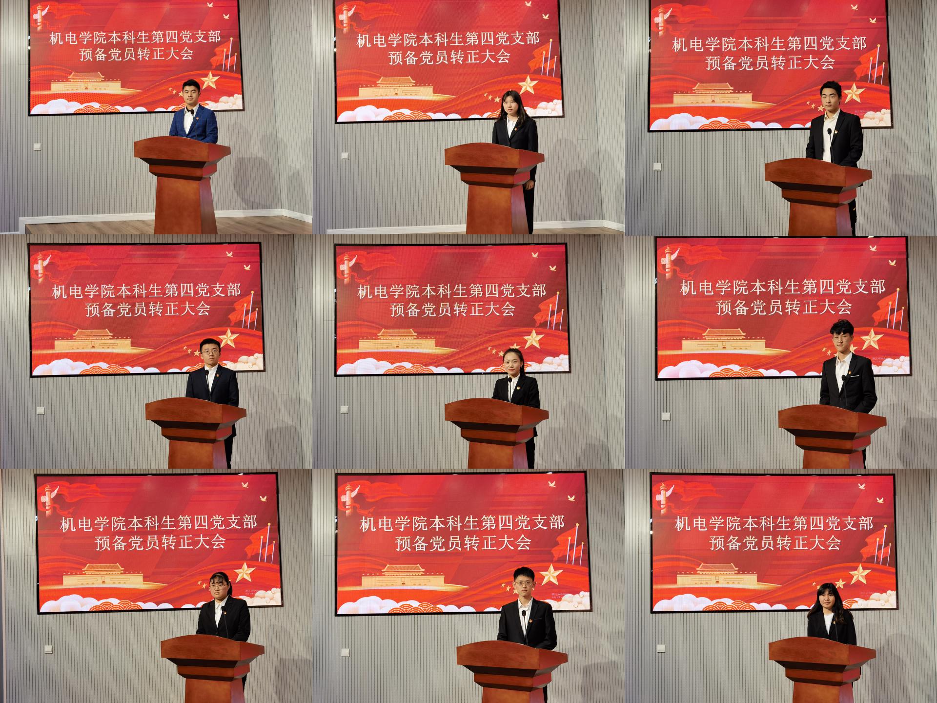 党支部先后两次召开支部预备党员转正大会。经预备党员向大会递交转正申请,支部总结表现并征求党内外群众意见,进行支部决议三个环节,大会接收车丞皎等11位同学为中共正式党员。