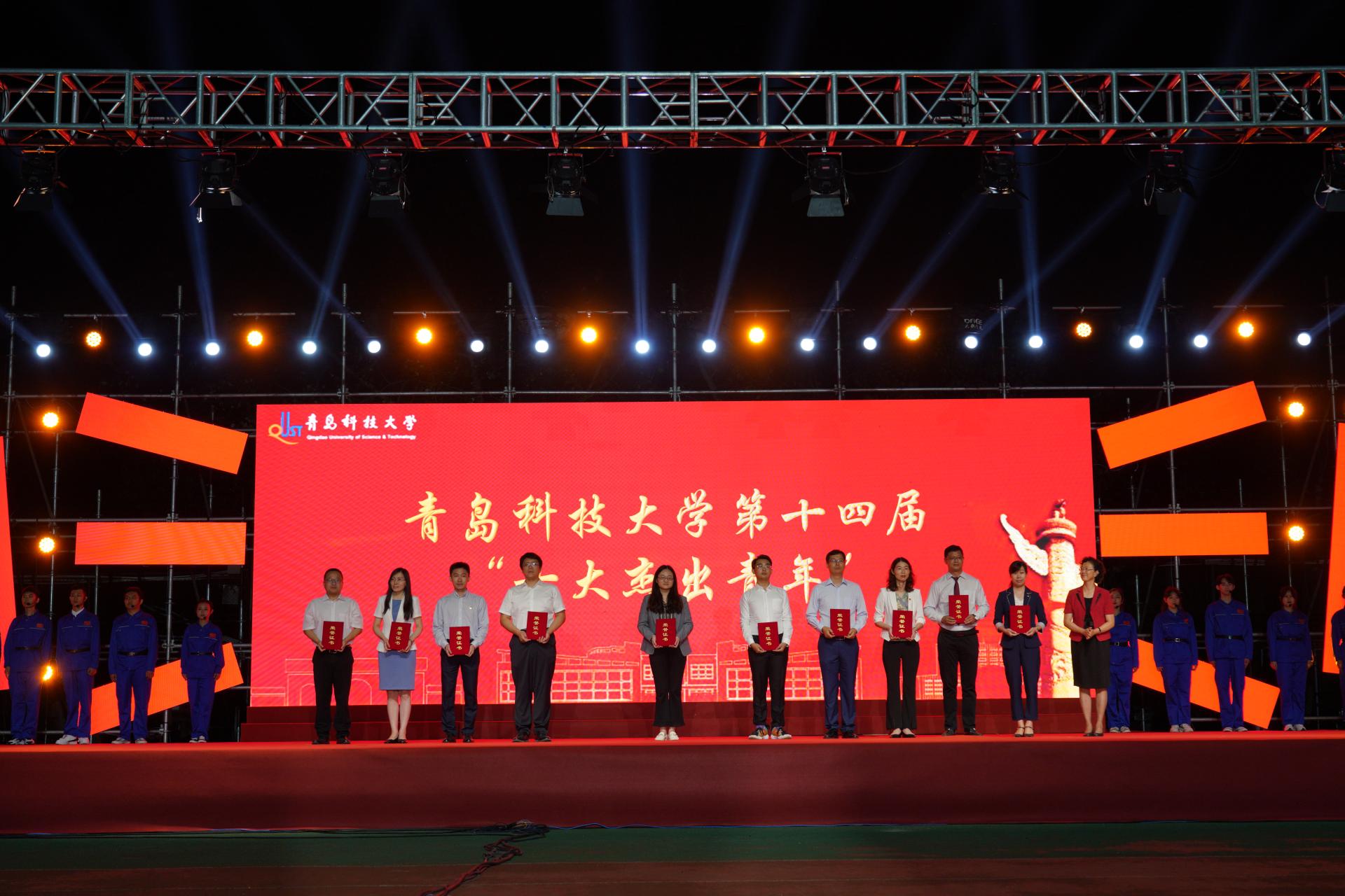 第14届“十大杰出青年”颁奖。学生代表为2021年市级以上各类荣誉称号获得者代表献花。