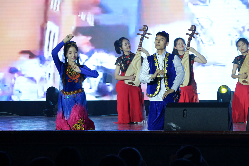 负责人,教师代表,校学生会、研究生会轮值主席及2021级全体新生现场观看了晚会,高密校区和中德校区师生通过线上直播观看演出。