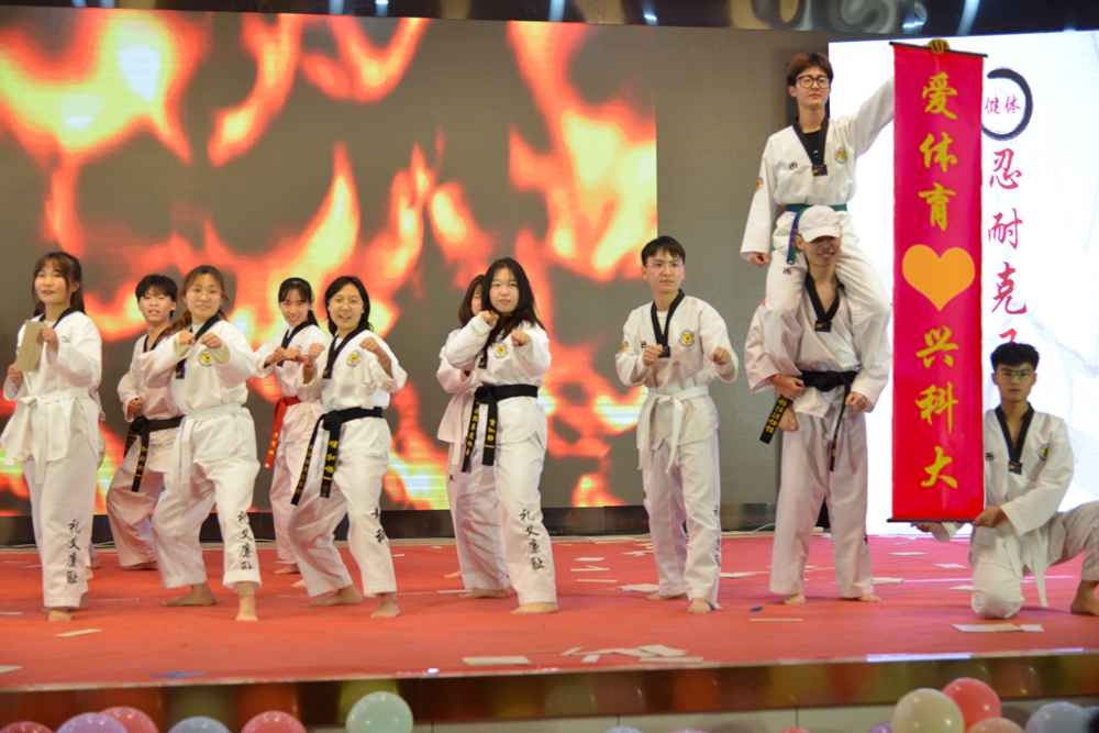 第二篇章《爱体育·兴科大》,V-show体育舞蹈社的《飞天》,生动演绎中华传统文化之源远流长、博大精深;梅花桩武术协会、弈剑阁陈氏太极拳协会带来的武术表演《强体魄·扬国威》,展现中华传统武术的魅力;跆拳道协会带来的《青科大力量》彰显青春力量;跳绳协会、青稞动漫社的《天行健·绳彩飞扬》以“光影”诠释运动风采。舞蹈、跳绳、武术、轮滑、跆拳道的融合表演,充分展示了 财神捕鱼
