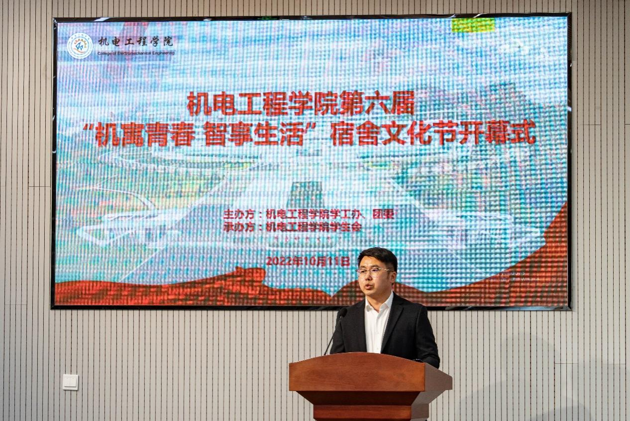 对本次宿舍文化节开幕式的举办表示热烈祝贺,肖强书记表示,宿舍是大学生生活的主要场所,同学们需要共同努力,维护好宿舍的环境,营造温馨的氛围,希望同学们以宿舍文化节为契机,抓好机会、积极作为,精诚团结、共同努力,树立“积极向上、文明健康”的生活态度、以“舍风、学风”建设为中心、以“团结,互助”为力量,从小事做起、从点滴做起,从打造优秀的宿舍文化做起,积极参加到高质量宿舍建设中,为打造具有机电特色的学习型、文明型、创新型、和谐型宿舍而努力,积极地促进校园文明建设,向党的二十大展现新时代青年的生机与活力。