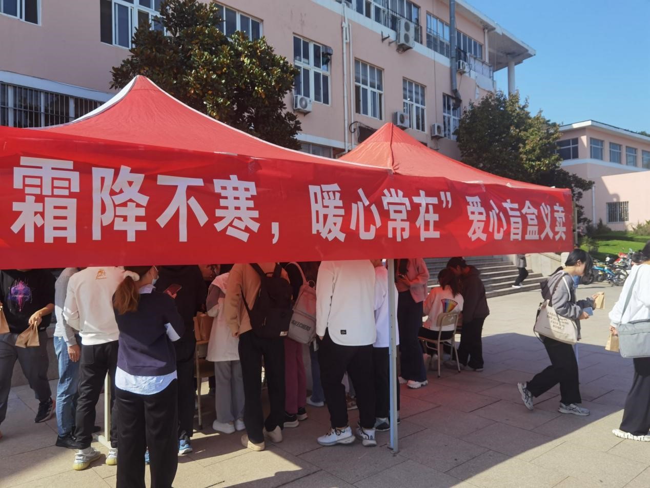 团委志工部红心青年志愿者协会于南苑餐厅门口举办以"霜降不寒,暖心常在"为主题的爱心盲盒义卖活动。