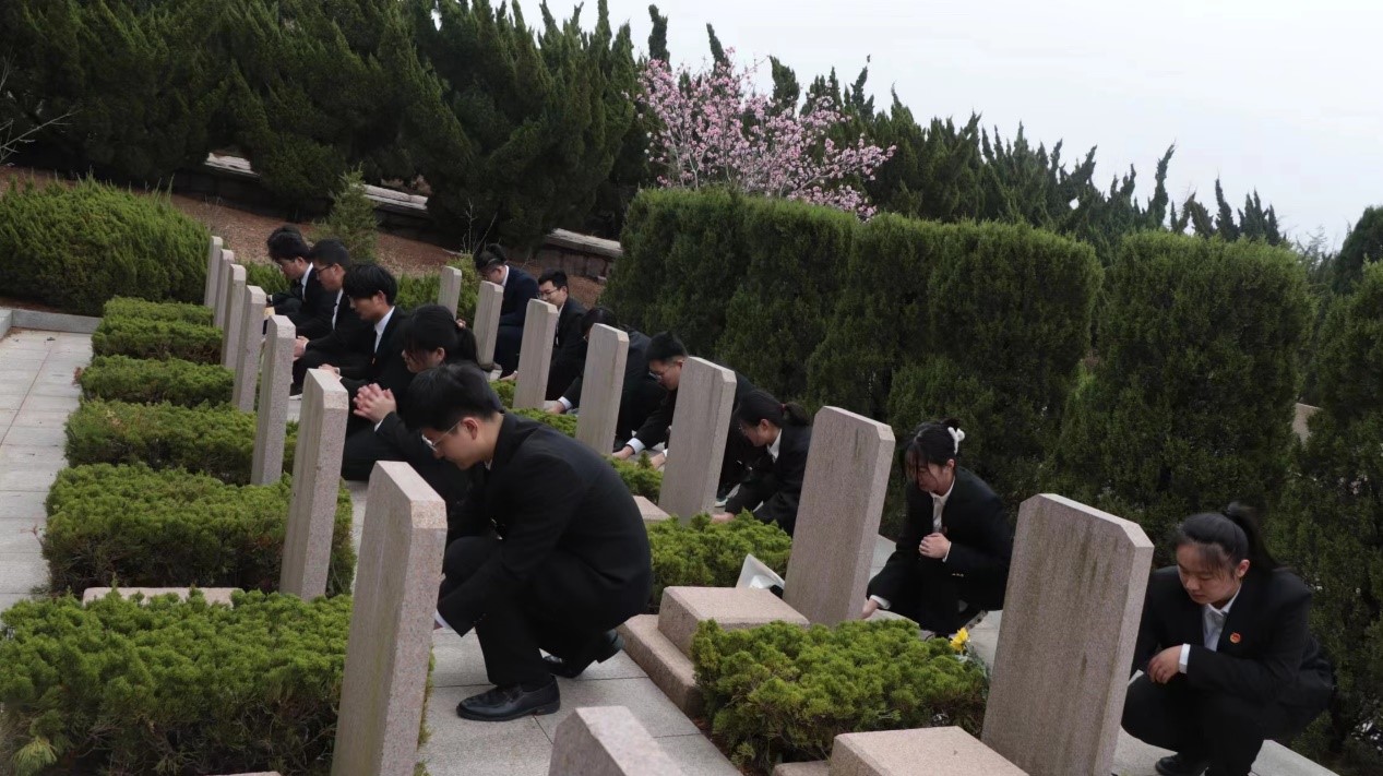 最后,全体成员来到烈士墓碑前,擦拭烈士墓碑,鞠躬默哀并献上手中的黄白菊花,以此来表达对革命先烈们的缅怀和敬仰之心。