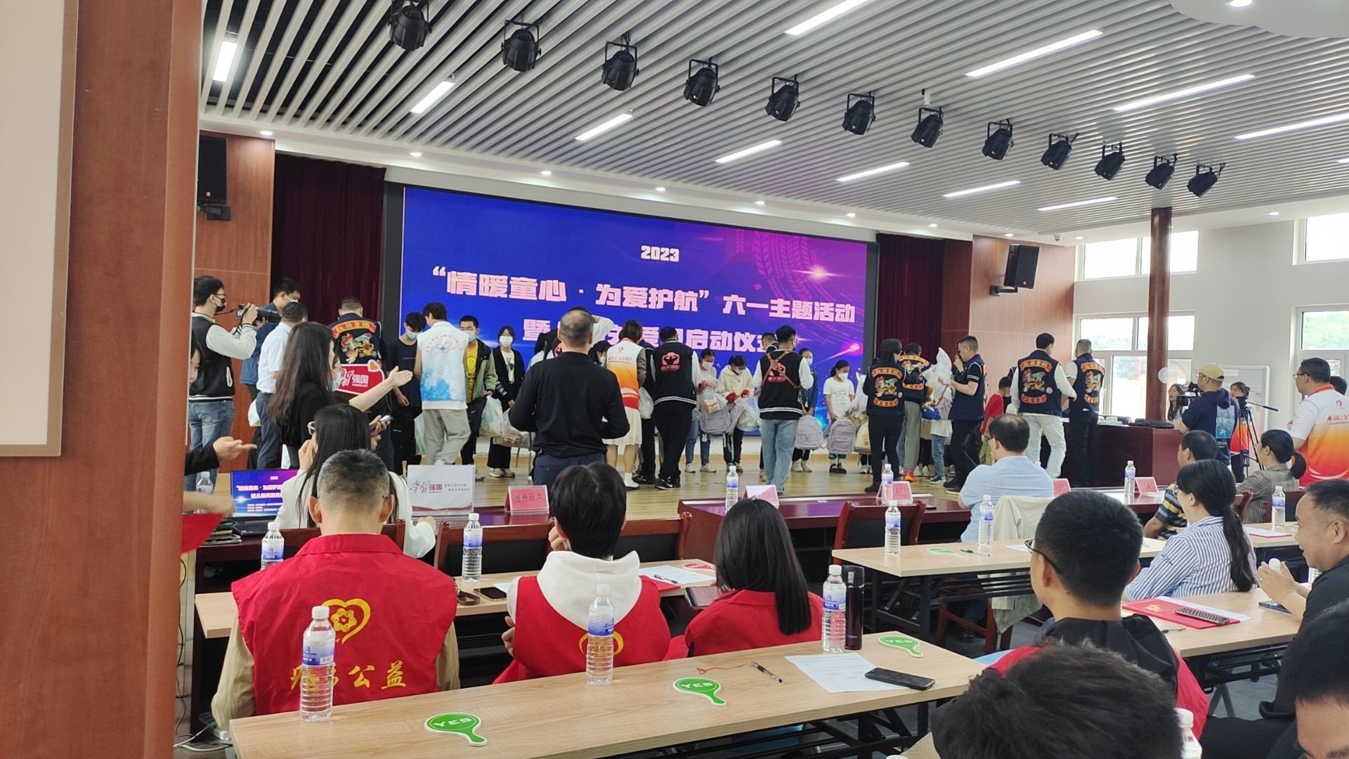 为了让志愿者们更好地了解本次活动的主要工作,负责人首先为志愿者们进行了简单的培训。随后,志愿者们各司其职,分别走进不同的会场,协助工作人员布置主会场,搬运并摆放水和社会爱心人士赠来的物资。仪式开始后,为了维持良好的会场秩序,志愿者们在后场陪伴孩子们学习、娱乐。通过有趣的互动游戏,与孩子近距离接触,走进他们的内心世界,让孩子们感受到来自社会的温暖和关怀。