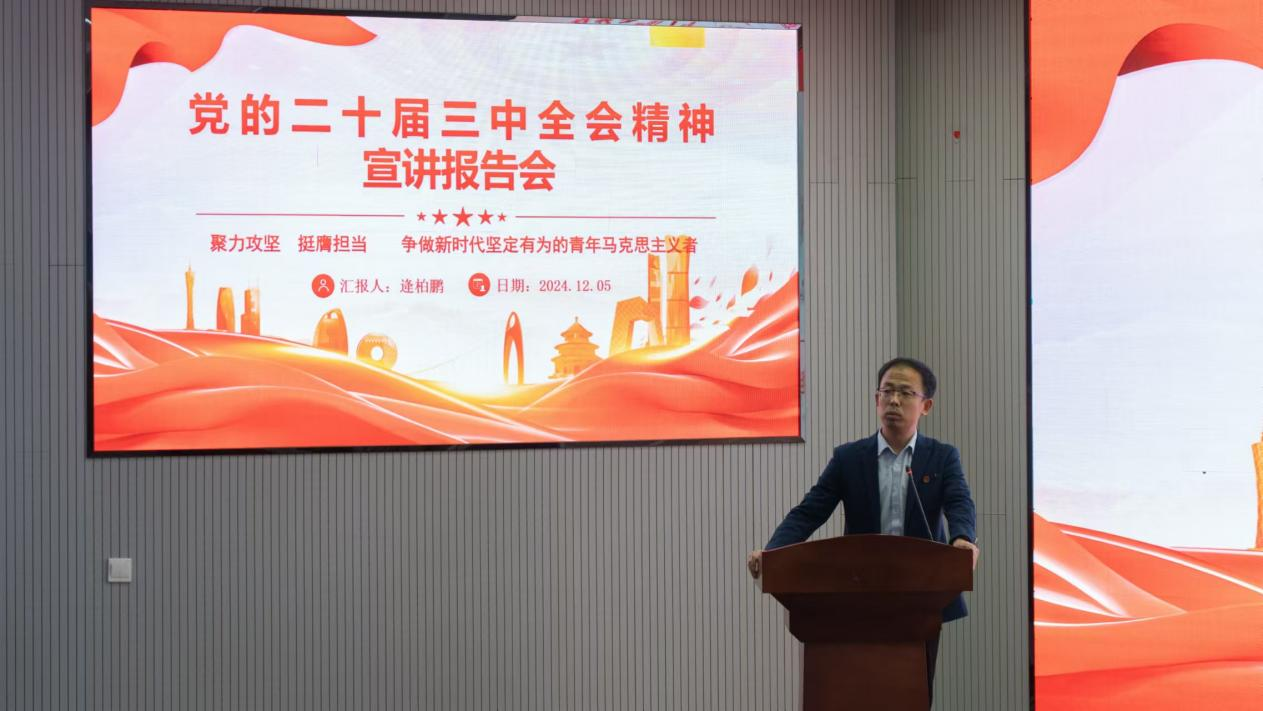 12月5日, 财神捕鱼 于530会议室开展“青马工程”培训,本次培训以“聚力攻坚,挺膺担当”为主题,由 财神捕鱼 团委书记逄柏鹏老师做党的二十届三中全会精神宣讲报告,“青马工程”培训班学员参会。