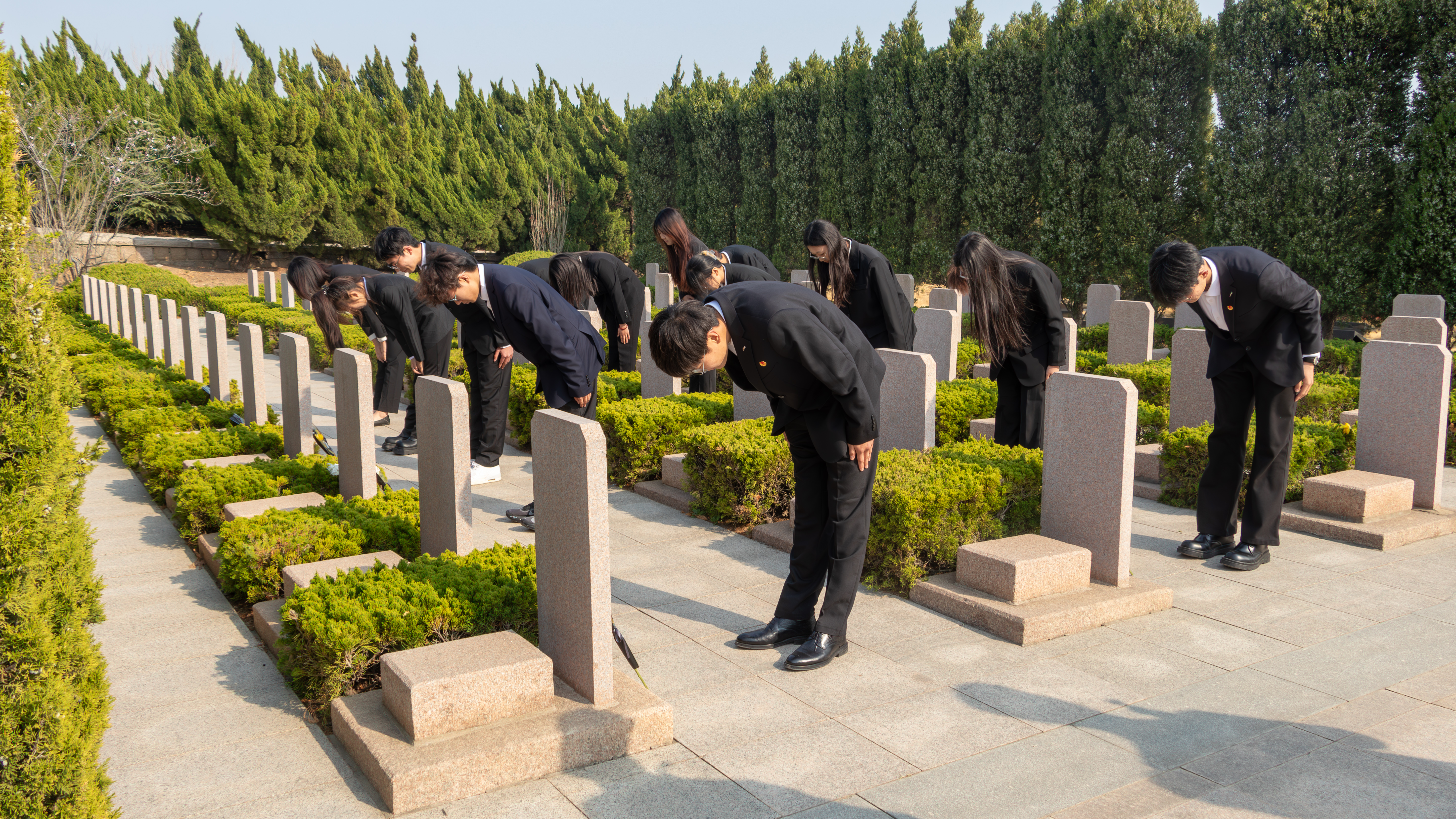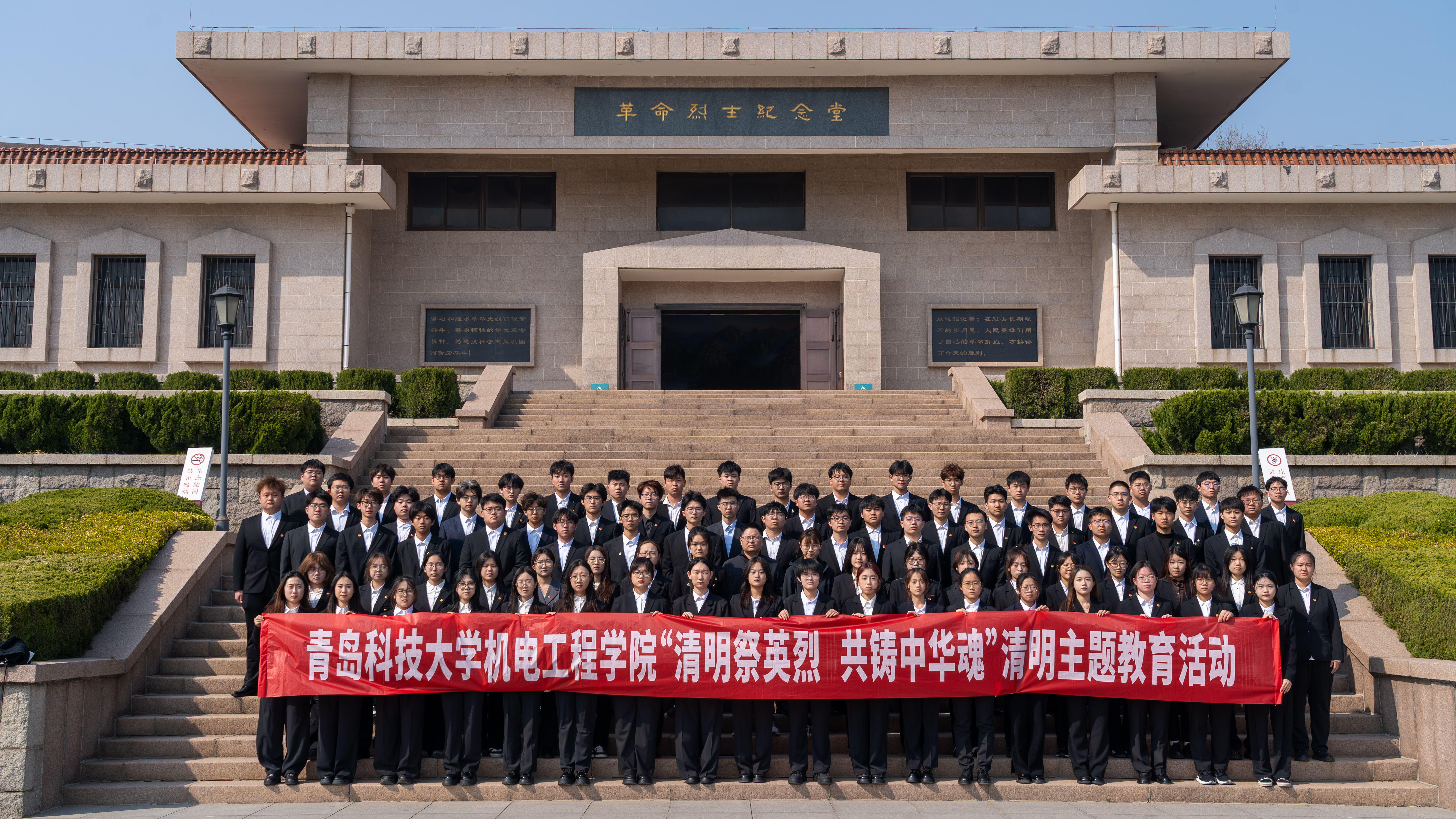 学生会、志工部、学生党支部、青马工程培训班等学生骨干100余名前往青岛市崂山区烈士陵园开展主题教育。师生们怀着崇敬之情步入烈士纪念馆,认真聆听讲解员的介绍,认真观看珍贵的历史图片、烈士遗物和文献资料。一幕幕英勇战斗的场景、一段段感人至深的故事,使在场师生深刻体会到如今和平幸福生活的来之不易,更加坚定了继承先烈遗志、勇担时代重任的信念。