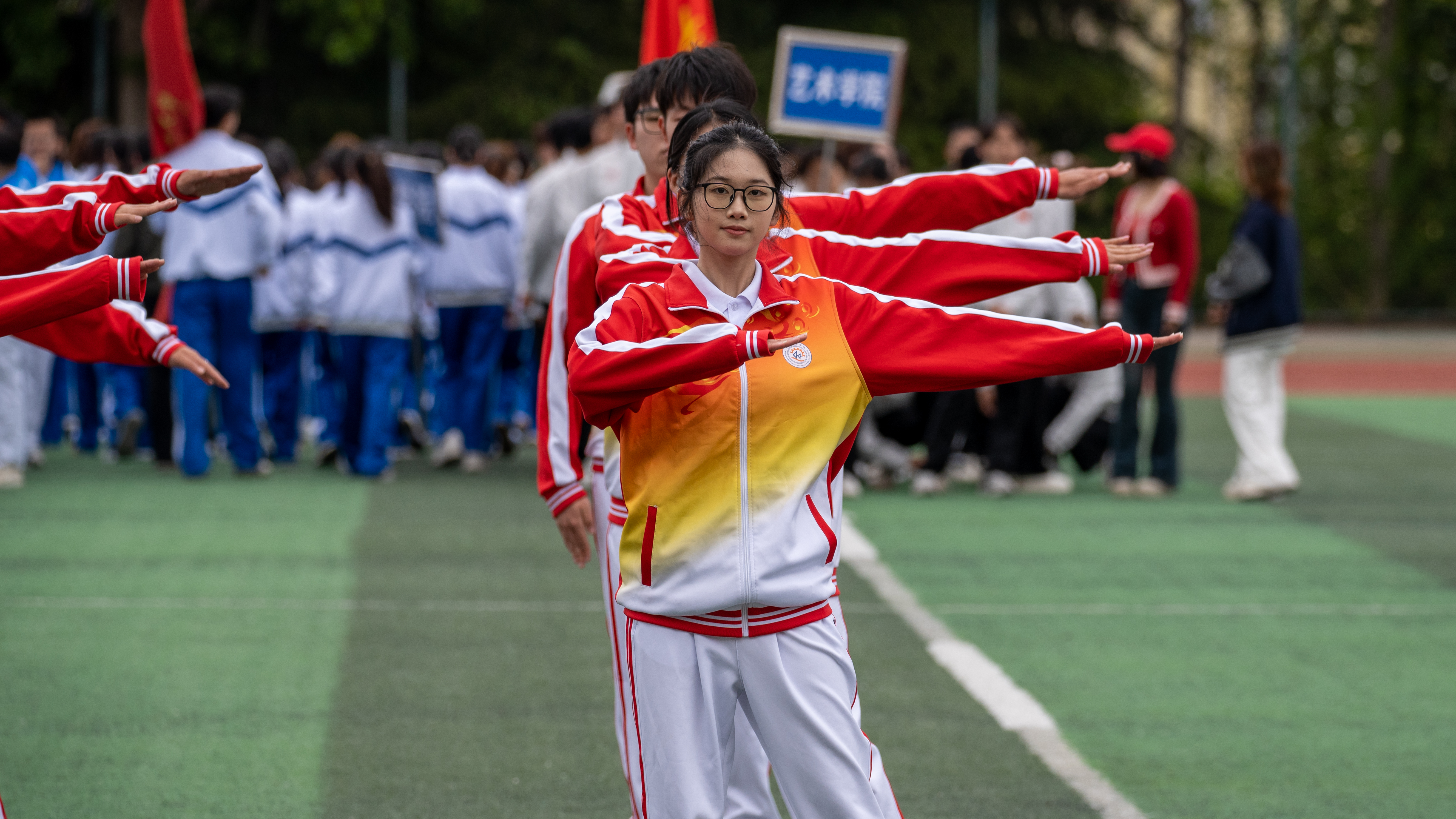 机电学子奔跑在如茵操场,初夏的风拂过发梢脸庞,将少年意气展现得淋漓尽致。随着广播体操音乐的响起,同学们精神抖擞、意气风发,动作娴熟、整齐划一,一静一动间,尽显激情与活力。参赛队员始终保持高昂饱满的精神状态,展现了机电学子的青春色彩和昂扬风貌,用实际行动诠释“爱体育·兴科大”。
