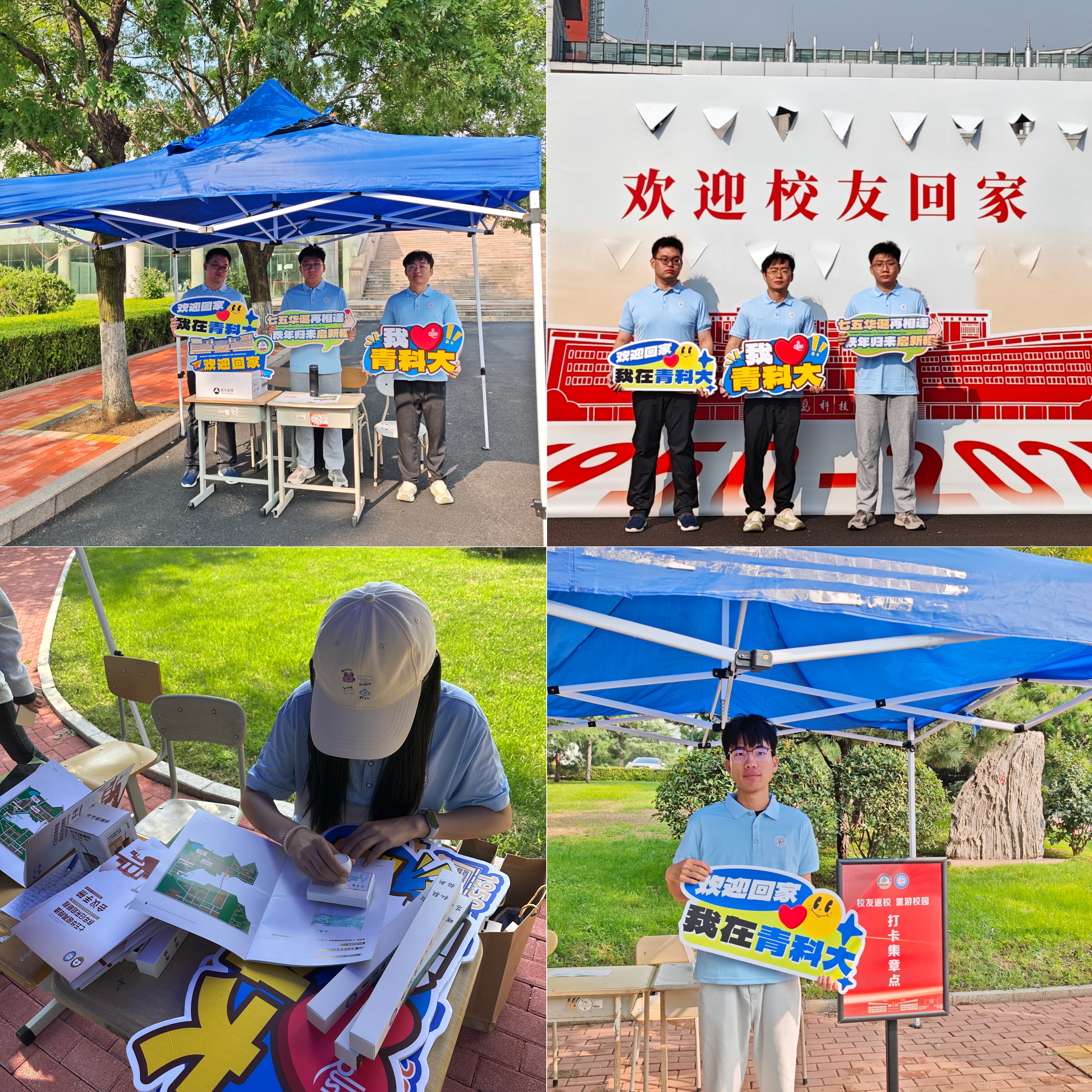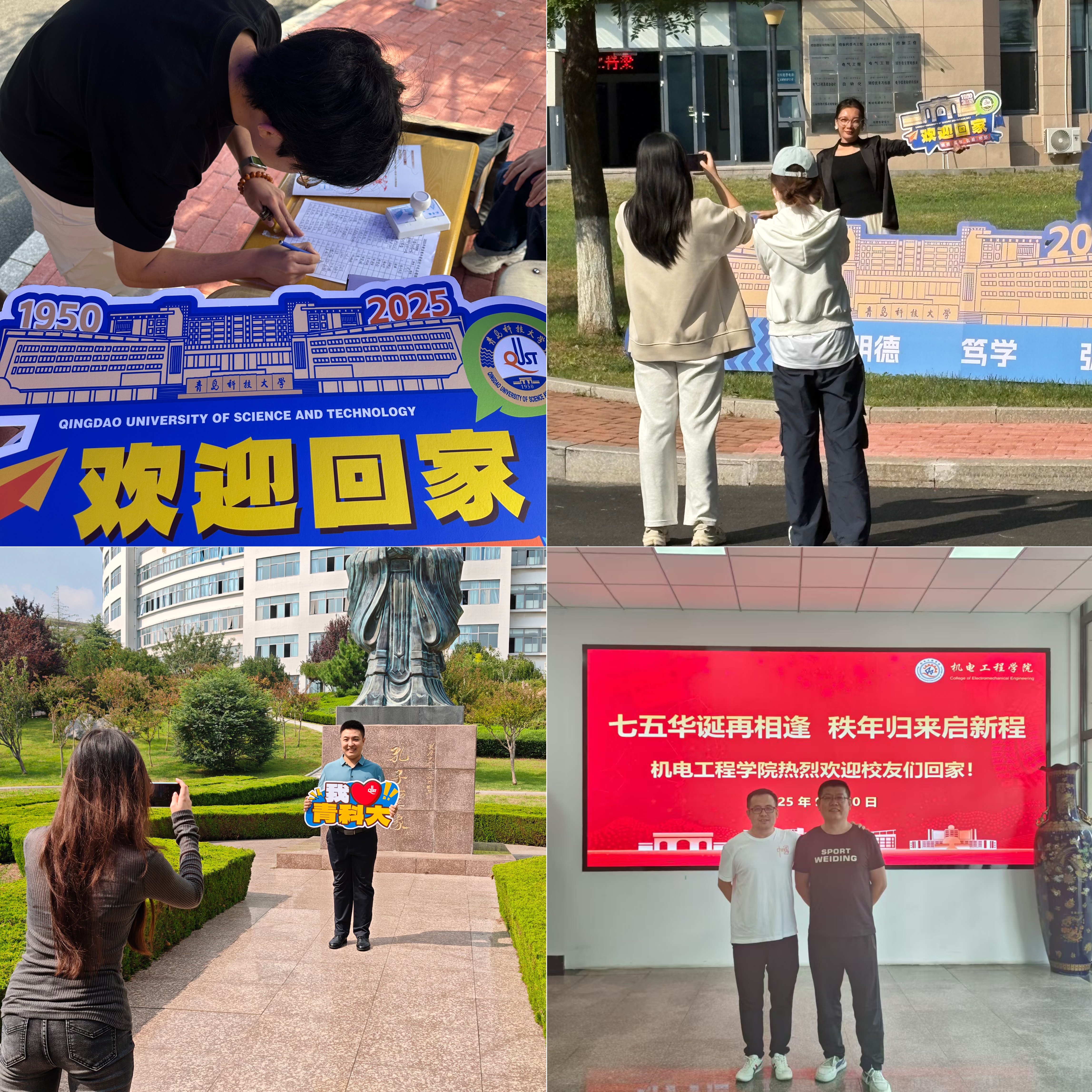 楼前,志愿者们为校友讲解建筑背后的岁月故事,见证75周年历史印记与笑容的同框;孔子像下,共同感触校训的源远流长;弘毅楼前,细数光影间的青春记忆;南苑食堂里,陪伴校友重拾烟火气十足的校园味道。一个个精心布置的打卡点串联起回忆的脉络,每一枚盖下的印章都沉甸甸地承载着校友对母校的眷恋与牵挂,相机快门声里,一张张笑脸成为校庆最珍贵的纪念。