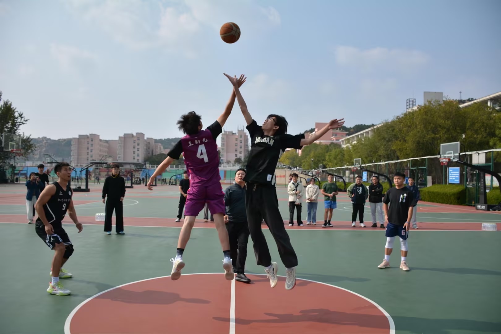 团委书记兼学工办主任逄柏鹏出席开幕式并致辞,鼓励同学们以运动促进交流,在比赛中收获成长。运动员与裁判员代表先后宣誓,承诺恪守体育精神、公正执裁。随着开幕球高高抛起,为期五天的篮球盛宴拉开序幕。