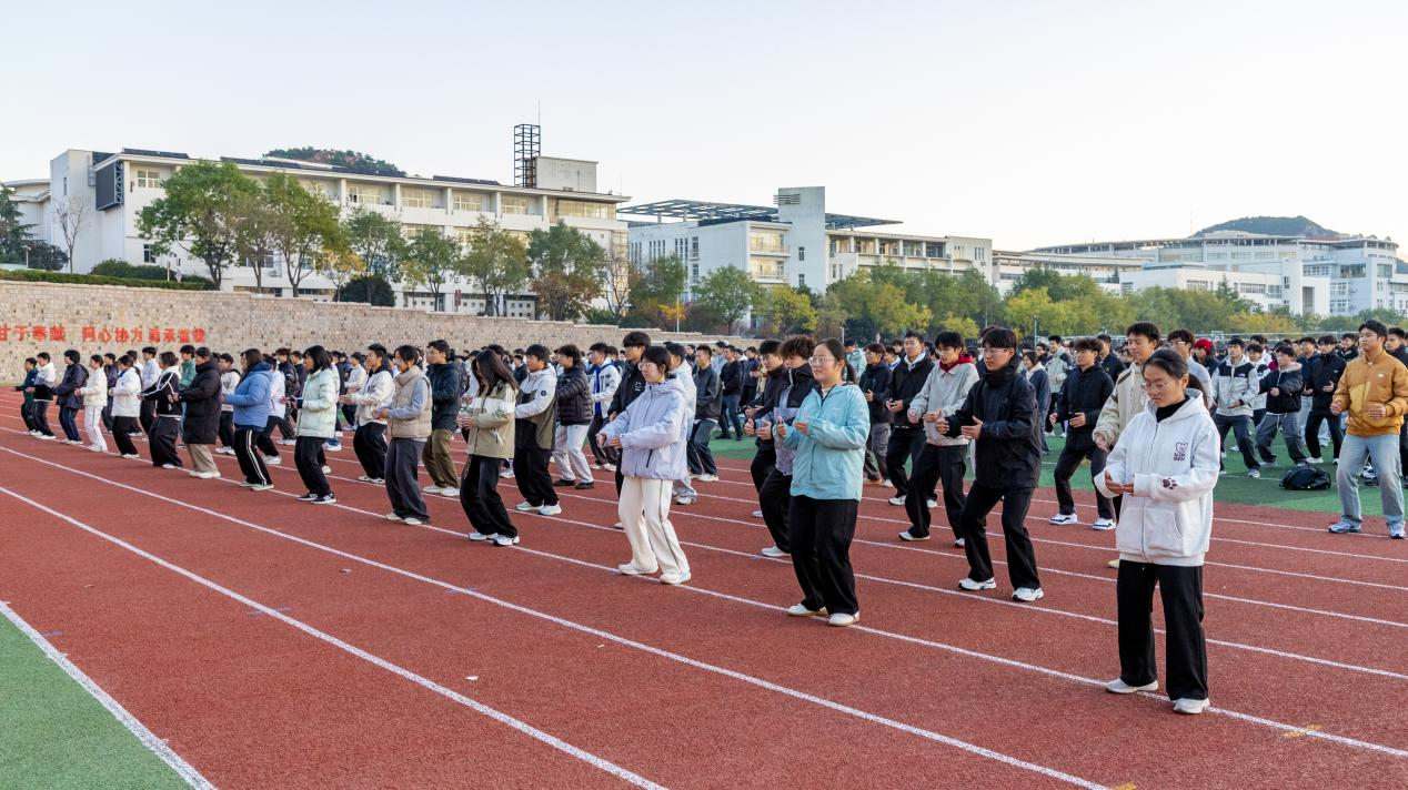 活动前,2025级的同学们利用早操、休息时间组织班级学习“八段锦”,坚持每天清晨到操场上参与集体训练。从最初的跟练学习到后期的熟练统一,在反复练习中逐步掌握了八段锦的动作规范与节奏要领,在提升了自身的身体素质的同时,也深刻体悟到了传统文化中“形神兼备、内外兼修”的养生哲学。