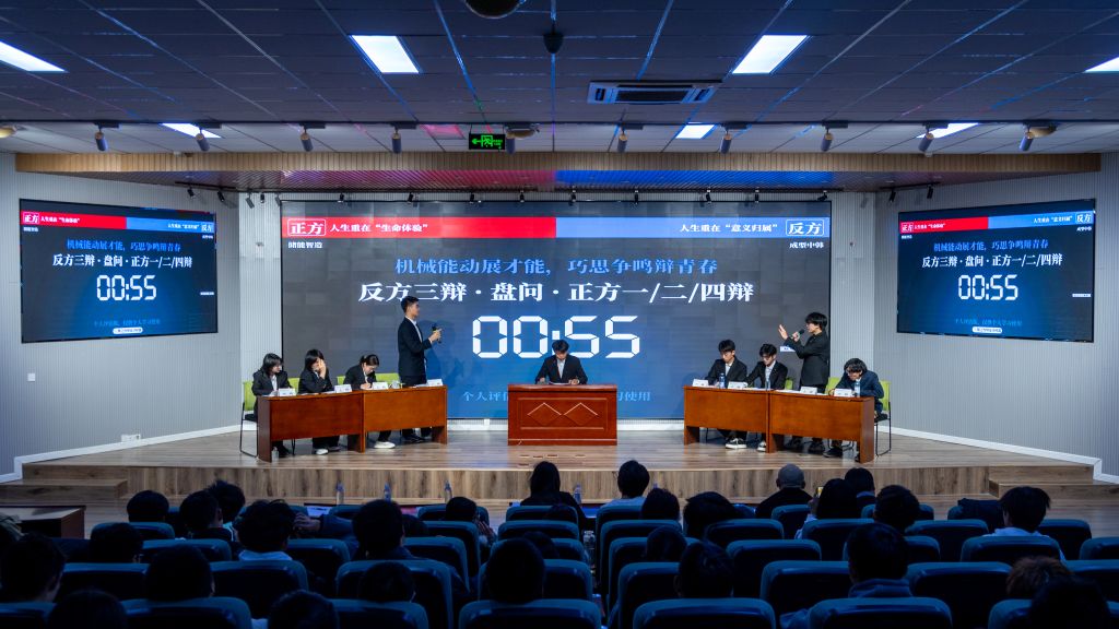 历经初赛、复赛的多轮思维交锋,储能智造队与成型中韩队凭借出色的逻辑素养与临场应变能力成功晋级决赛。双方围绕“人生重在生命体验还是意义归属”这一富有哲思的辩题展开激烈辩论。比赛过程中,辩手们立论扎实、质询犀利,在自由辩论环节更是引证丰富、逻辑缜密。现场气氛紧张热烈,掌声不断。