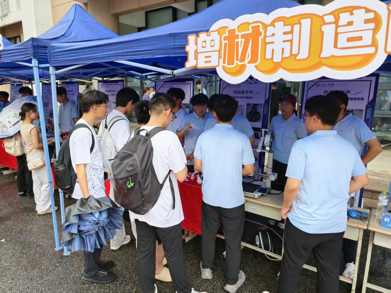 活动现场气氛热烈,各展示摊位前均聚集了众多热情高涨的师生。其中,3D 打印摊位成为全场关注的焦点,精细的哪吒模型、造型别致的创意摆件以及印有 财神捕鱼