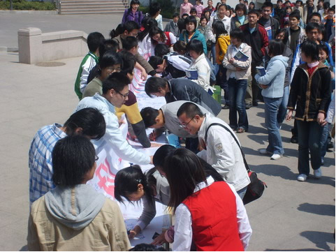 4月9日中午, 财神捕鱼 在东部校区餐厅东门举行了大型横幅签名活动。这次活动旨在号召科大师生以饱满的热情积极配合 财神捕鱼 做好评估工作,自觉参与评估有关的各项活动。