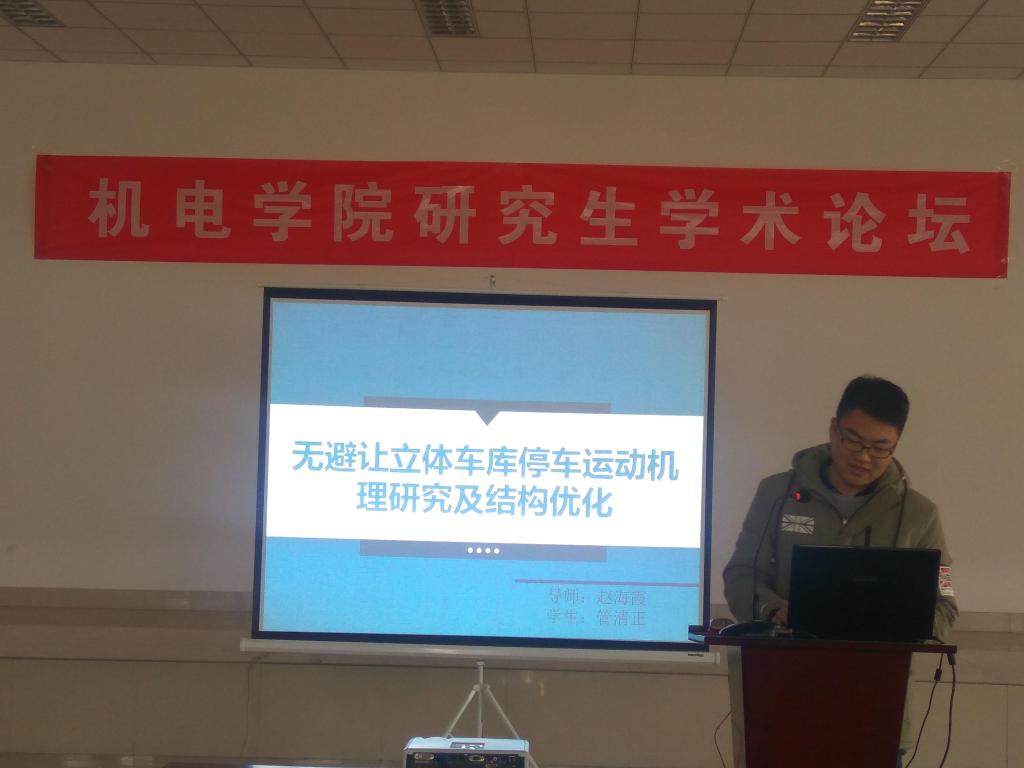 本期论坛围绕机械加工、机械设计、力学方向展开探讨,吴洋、武丹、张金龙、管清正四位同学分别做了题为《冻融循环下类软岩强度及蠕变特性研究》、《形状记忆合金复合材料悬臂梁几何非线性有限元分析》、《不同角度贯通裂缝岩石相似材料蠕变性能研究》和《无避让立体车库停车运动机理研究及结构优化》的学术报告。分别就岩石在冻融情况下的破坏、风机扇叶复合材料抗破坏以及热门的立体停车机构的运动分析等向大家介绍了各自的研究方向与进展。评委老师点评时也强调,在做研究时,需要从细节开拓思路,寻找创新点。最终,吴洋同学以91.25分的成绩取得了本期论坛的第一名,荣获“最佳学术报告奖”,其余三名同学获得“优秀学术报告奖”。