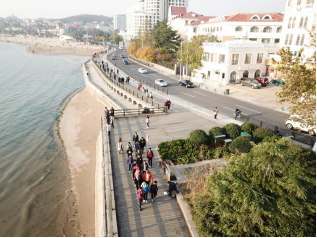 海洋研究所、第二海水浴场、花石楼、紫荆关路等地方,队员们边欣赏美景,边合影留念,心情愉悦。下午5:30,青尘义工队全体人员在中山公园地铁站集合,开始返回。