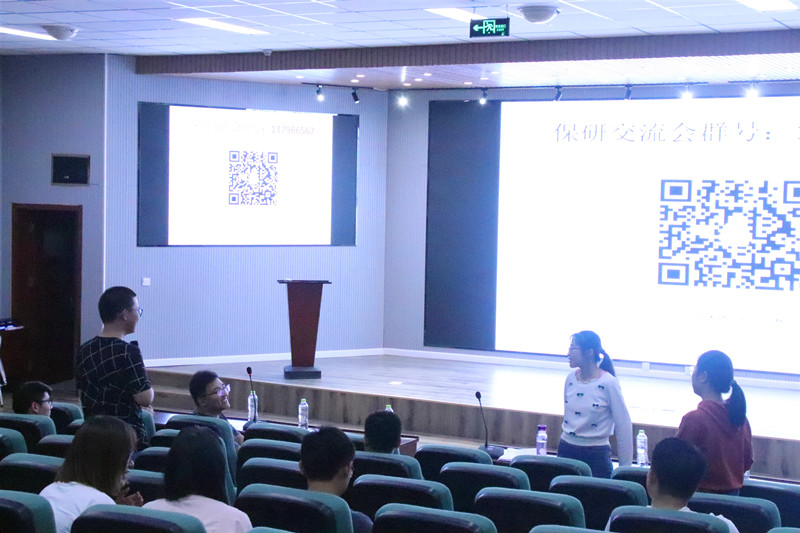 的不同面试方式。在ppt讲述完成后,他们还非常耐心的为在场同学进行了答疑,在答疑中,有意向走保研之路的同学们把自己心中的问题全部言出,学长姐们也认真的解答,最终,活动在一阵阵掌声中顺利结束。
