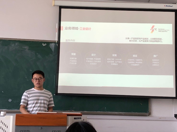 2012级毕业生、山东省工业设计研究院暨中德工业设计中心工程中心负责人郑炳华为工业设计18级同学开展经验交流报告会。郑炳华就目前行业发展为18级同学作出系统地报告,并答疑解惑。