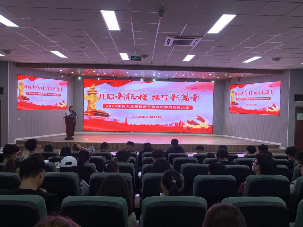 2018级辅导员苗清、孙坤岩及2019年秋季入党积极分子培训班学员参加了此次动员大会。
