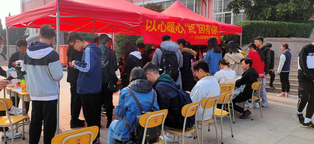分团委社团管理部青年志愿者协会在南苑餐厅门口举办了以“以心暖心,‘纸’因有你”为主题的折纸义捐活动,该活动通过募集爱心折纸作品并挑选参与活动的幸运同学与青协志愿者共同前往河西小学与晓艺自闭症儿童康复中心为小朋友们赠送爱心折纸作品的形式展开,体现了青年志愿者协会扩大影响与发动全校公益的工作目标,成功吸引了广大同学积极参与。