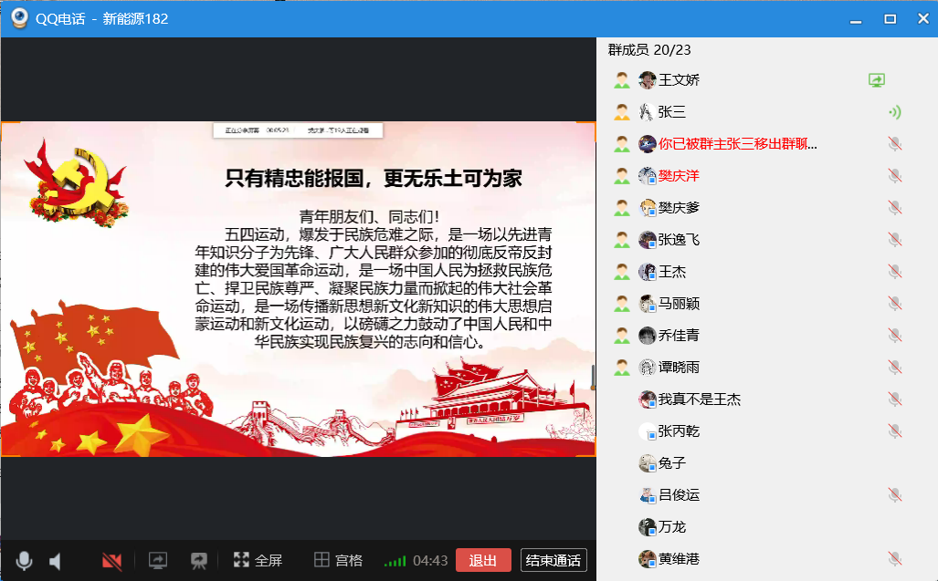 分团委组织部开展【绽放战疫青春 坚定制度自信】系列活动之纪念五四运动100周年大会讲话一周年暨“五四精神,传承有我”线上主题团日活动,旨在继承和发扬伟大的五四精神,培育团员青年爱国、爱党、爱团的坚定信念,激励团员青年万众一心投入到共青团的建设中去。机电 财神捕鱼