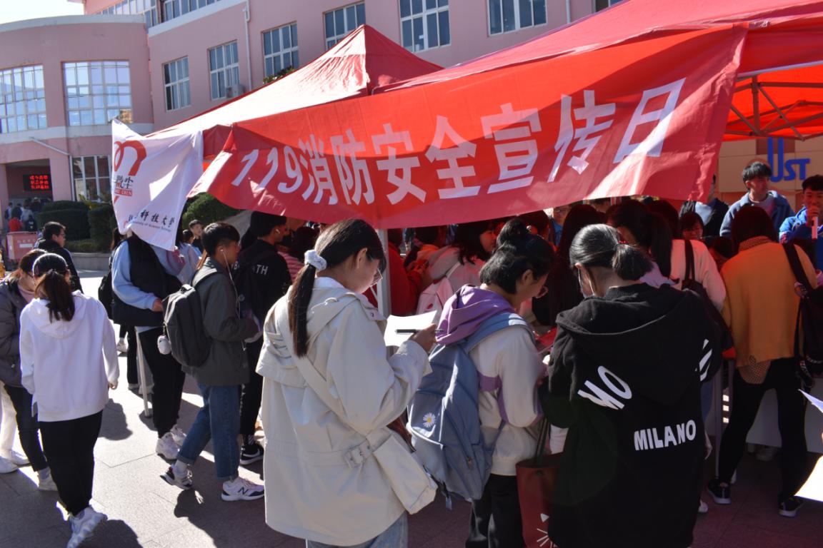 关注消防,生命至上。11月9日上午10时至下午4时,志愿者们分发消防安全宣传单页,向周围同学讲解消防安全知识,参与者进行现场答题,人来人往,络绎不绝。在校园内营造了“人人关注消防,人人参与消防,人人支持消防”的良好气氛。