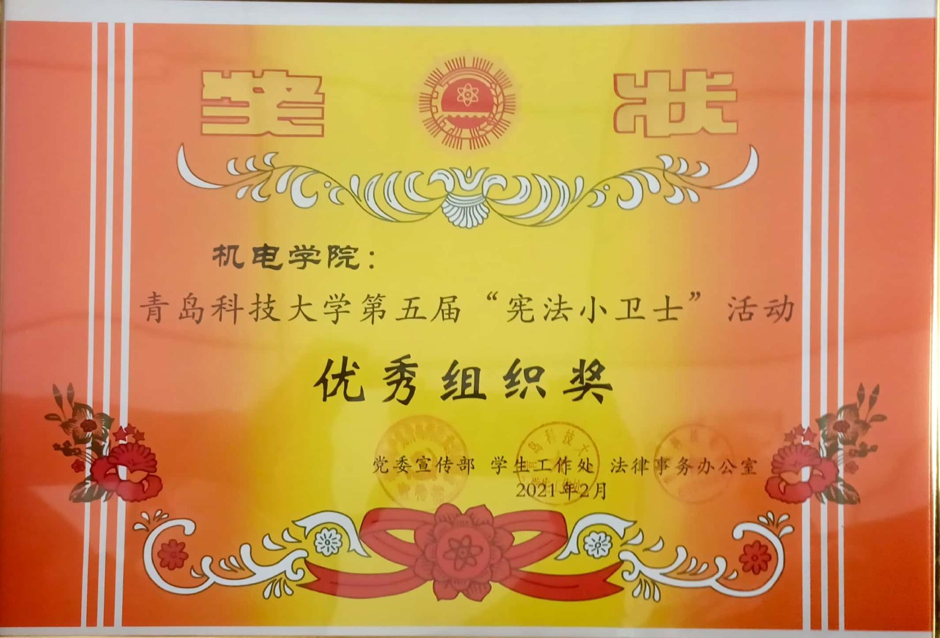 第五届“宪法小卫士”优秀组织奖。