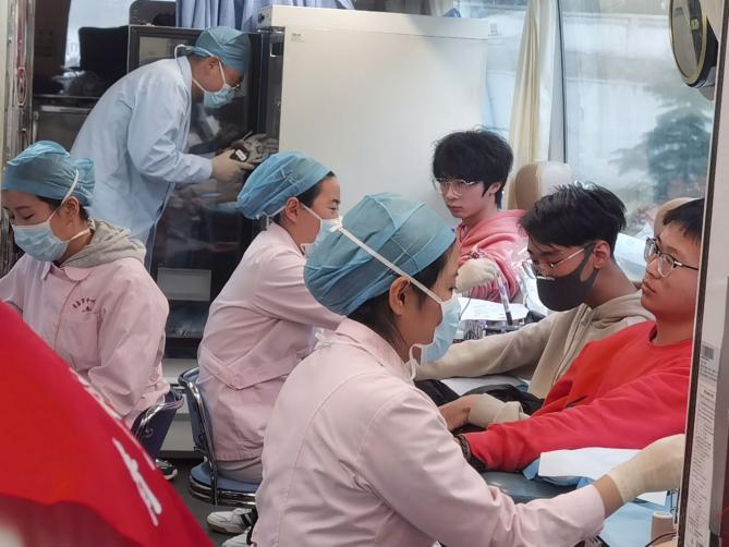 献血车内气氛也是愉快而轻松的,献血者们有说有笑,大家一边为自己能对社会奉献自己的爱心而感到满足和自豪,同时笑语嫣然氛围也冲淡了采血过程中产生的紧张心理。护士姐姐细心叮嘱每一位同学要谨记献血后的注意事项,同学们也认真聆听,冬日里的人情暖意充满献血车。时间悄然而过,已到下午三点四十八分,本次活动圆满结束。在六个小时的活动时间里,我们无时无刻地不感受到青科大学子对于无偿献血的热情。