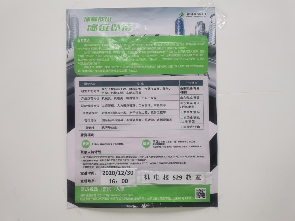 浦林成山公司宣讲会于16:00举行,同学们的积极参与获得了招聘方负责人的一致好评。