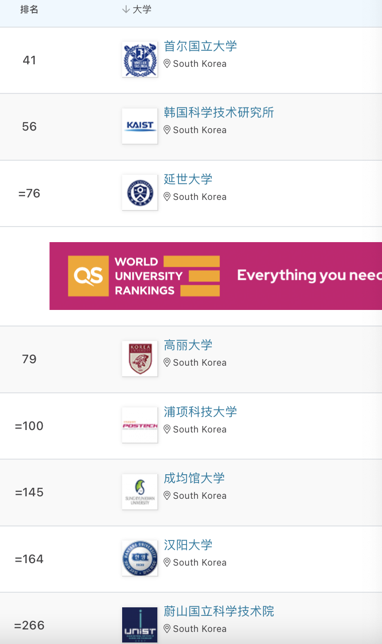 ​2024QS世界大学排名:汉阳大学位列全球第164位