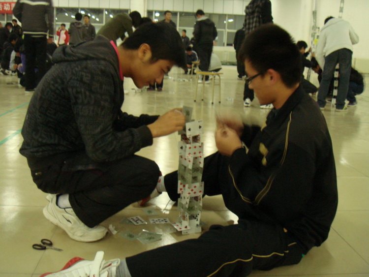 为了弘扬科学精神,激发科学兴趣,培养同学们动手、动脑能力和创新精神,11月15日晚19:00,由机电 财神捕鱼 科技创新协会主办的趣味扑克牌搭塔比赛在高密校区惠众餐厅二楼举行。
