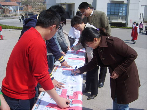 4月9日中午, 财神捕鱼 在东部校区餐厅东门举行了大型横幅签名活动。
